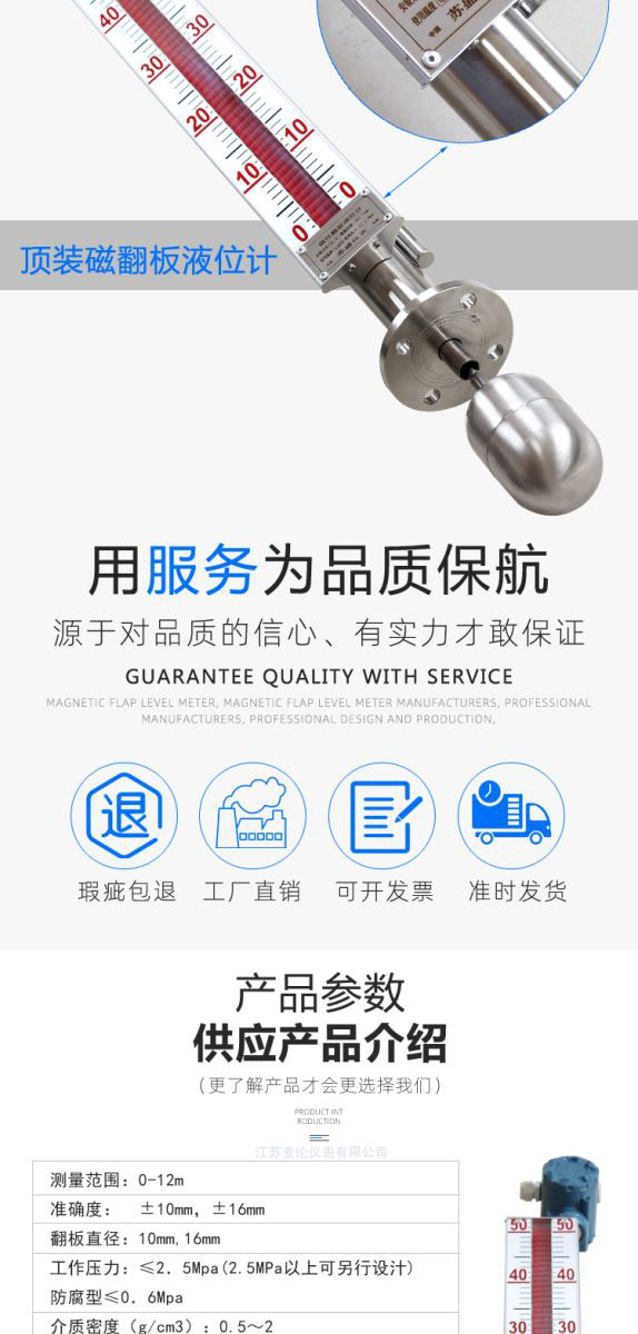 磁翻板液位計作為一種使用頻率*高的液位計,那么這種液位計的種類究竟有哪些呢?今天就讓小編給大家介紹一下,如何來正確的選擇適合的磁翻板液位計。磁翻板液位計是一種機械式的液位計,它的測量原理其實是非常簡單的,就是根據的密度做出相應大小的浮球,來上下浮動,連接外面的翻板箱,來實現在現場觀察到準確液位的目的。