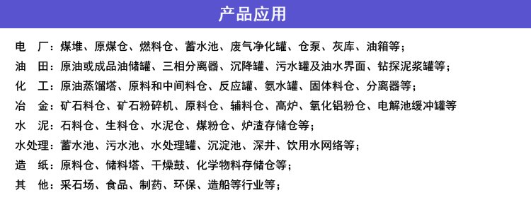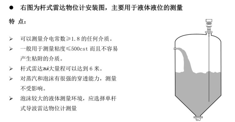 是依據時域反射原理(TDR)為基礎的雷達料位計,雷達料位計的電磁脈沖以光速沿鋼纜或探棒傳播,當遇到被測介質表面時,雷達料位計的部分脈沖被反射形成回波并沿相同路經返回到脈沖發射裝置,發射裝置與被測介質表面的距離同脈沖在其間的傳播時間成正比,經計算得出液位高度。導波雷達料位計適用于酸堿儲罐、漿料儲罐、固體顆粒、小型儲油罐。各類導電、非導電介質、腐蝕性介質。如煤倉、灰倉、油罐、酸罐等。