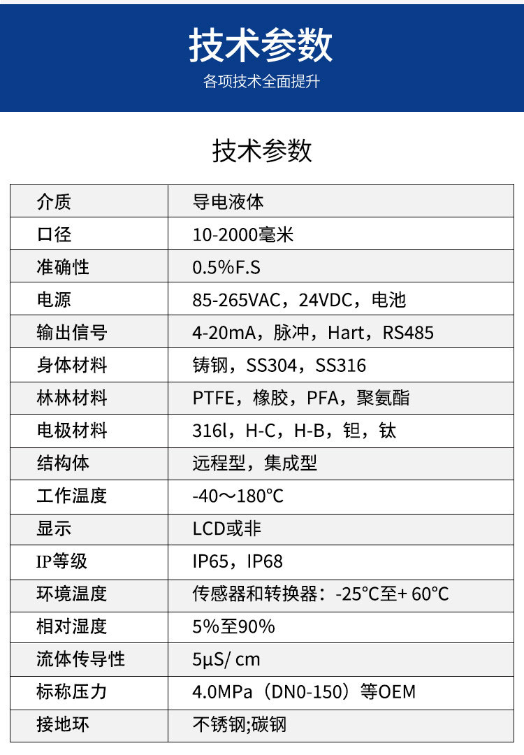 c、為適應不同介質測量的要求,傳感器的襯里和電***材料可以有多種選擇。