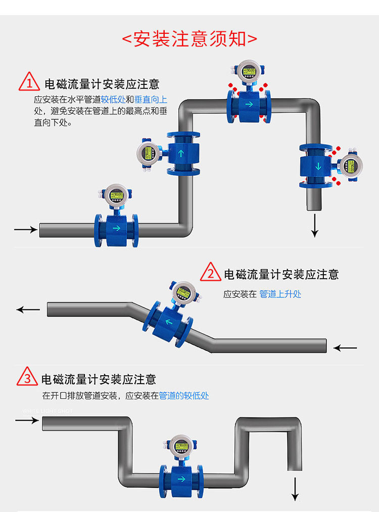 1、盡量避免鐵磁性物體及具體強電磁場的設備(如大電機、大變壓器的等),以免磁場影響傳感器的工作磁場和流量信息。