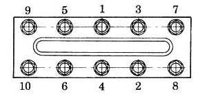 按裝棱鏡(或玻璃板)時受壓要均勻,螺紋擰緊要求交叉型式分幾次旋緊(見下圖),達到扭力20-39.4Nm為止。