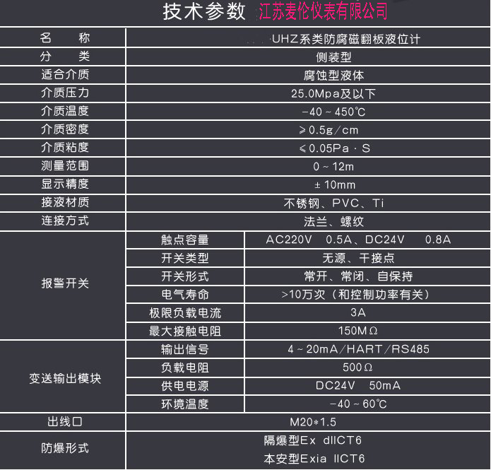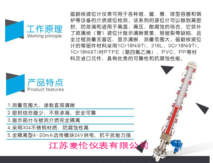 產品特點:適用于壓力容器的液位和邊界測量。集現場指示、遠程輸出、控制報警于一體;指示新穎,讀數直觀醒目,觀察角度可根據用戶的方便而改變;測量范圍大,不受儲罐高度限制;指示機構與被測介質完全隔離,密封性好,可靠性高,使用安全,可采用陶瓷翻轉柱結構簡單、安裝方便、維護成本低