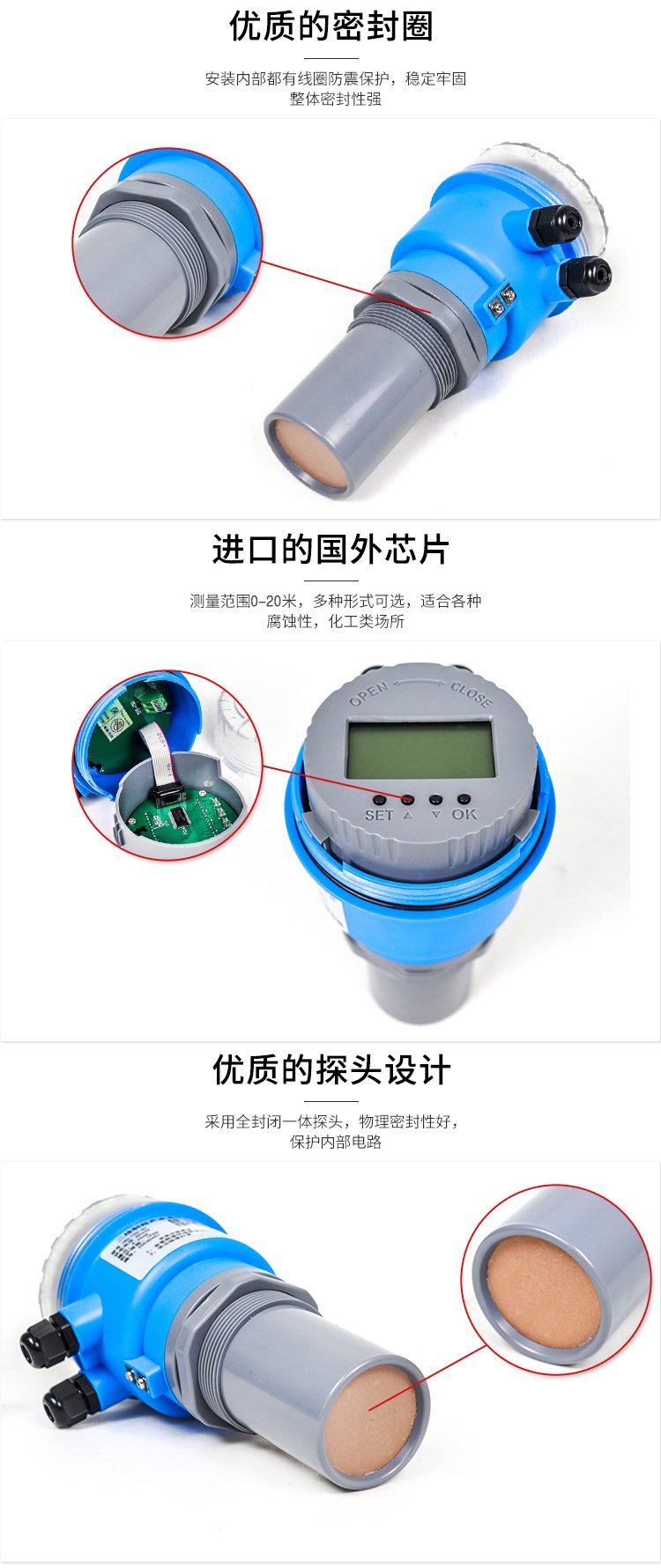 從而影響測量精度;如有必要,可增加波導管,其長度可與液位一樣低。應確保管內外液位能自由同步升降,內壁應光滑;在有水蒸氣的場合,盡量不要使用超聲波液位計。因為如果有蒸汽,很容易在探頭表面形成水滴,這將影響儀器的正常測量;露天安裝時安裝遮陽板(雨罩)。