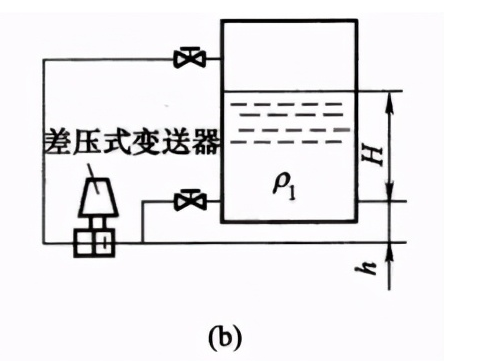 差壓液位計(jì)的原理如圖(a)所示。這種測量方法需要消除測量過程中液位波動(dòng)對(duì)指示值的影響。差壓液位計(jì)采用差壓變送器,通過容器底部反映液位高度和液位上的氣體壓力,并引入變壓器正壓室;將容器上的氣體壓力引入變送器