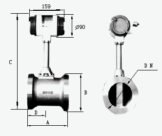 卡門(mén)渦街釋放頻率f和流速v成正比,因此通過(guò)測(cè)量卡門(mén)渦街釋放頻率就可算出瞬時(shí)流量。