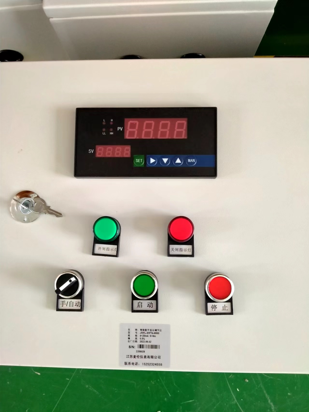 液位顯示控制器面板具有0~****光柱顯示模式的高清比例,以直觀地顯示液位范圍(如罐內液位高度、池內水位高度等),底部大屏幕高亮度led值顯示,當四通報警燈處于報警狀態時,相應的紅燈亮