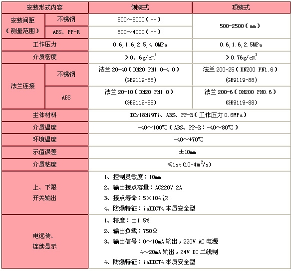 特點。浮球作為測量元件,磁鐵驅動柱顯示,無能量。具有上、下限位開關輸出,可實現遠程報警、限位控制。配備變送器可實現液位遠距離指示、檢測和控制。