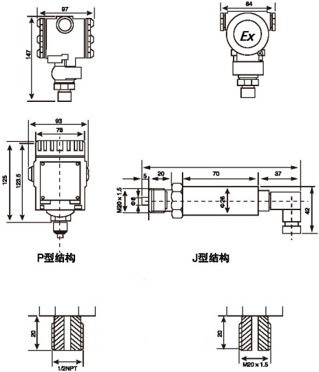 2、變送器的安裝地點,應盡量遠離大功率的電器設備,以避免電磁感應的干擾,影響本安型變送器的性能。