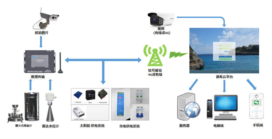 系統(tǒng)概述:水庫(kù)河道生態(tài)流量監(jiān)測(cè)系統(tǒng)適用于遠(yuǎn)程監(jiān)測(cè)河流、水庫(kù)等的實(shí)時(shí)水雨情狀況,管理部門(mén)可通過(guò)該系統(tǒng)及時(shí)掌握河流的降水、斷面水位等流域水文狀況,從而及時(shí)作出管理決策。