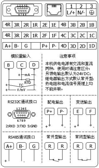 小屏無紙記錄儀接線接線方法為防止觸電,請?jiān)诮泳€前確認(rèn)供給電源已切斷。為防止火災(zāi),請使用雙重絕緣線(電源線建議使用截面積≥1mm²,絕緣600V 的導(dǎo)線;繼電器輸出接線需耐電壓性強(qiáng),截面積≥0.5 mm²的導(dǎo)線)。在電源回路中請?jiān)O(shè)置空氣開關(guān),將本表與總電源隔開。牢固地?cái)Q緊端子螺絲。擰緊力矩:0.5N.m(5kgf.cm)。在接好電源線后應(yīng)接上電源檢查儀表是否正常,在此之前請勿連接信號線,待確認(rèn)儀表能夠正常工作之后,斷開電源再進(jìn)行信號線的連接。測量回路與電源回路需分開鋪設(shè),測量對象*好不是干擾源,一旦無法避免,請將測量對象和測量回路絕緣,小屏無紙記錄儀并將測量對象接地。對于靜電產(chǎn)生的干擾,使用屏蔽線較好。對于電磁感應(yīng)產(chǎn)生的干擾,將測量回路接線等距離密集絞接較好。如果將輸入接線與其他儀表并聯(lián),會相互影響測量值。不得已需要并聯(lián)時(shí)需注意在運(yùn)行中請不要開關(guān)其中一個儀表的電源,這樣會對其他儀表產(chǎn)生不良影響。熱電阻原理上不能并聯(lián),電流信號原理上不能并聯(lián)。熱電偶輸入時(shí)請不要使用散熱效果好的粗線(建議使用截面積<0.5mm²的線),注意盡量不要使外部氣溫變化(特別是附近排氣扇的開關(guān)會產(chǎn)生較大溫度變化)。鉑電阻輸入時(shí)每根引線電阻應(yīng)小于 10?(引線阻值相同)。