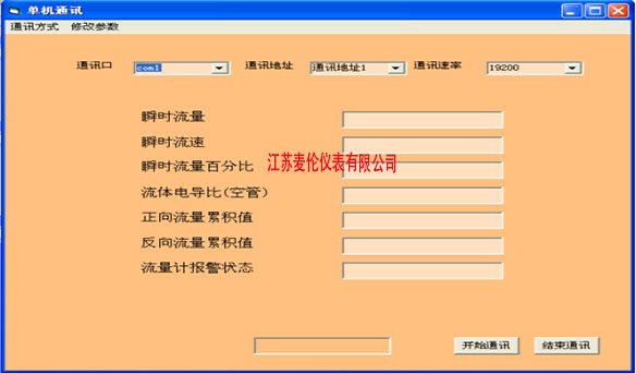 電磁流量計(jì)在軟件上設(shè)置通訊口(有的計(jì)算機(jī)有兩個(gè)串口,只有一個(gè)串口時(shí)設(shè)置為com1)、通訊地址和通訊速率使他與您在電磁流量計(jì)設(shè)置的相同,點(diǎn)擊開始。