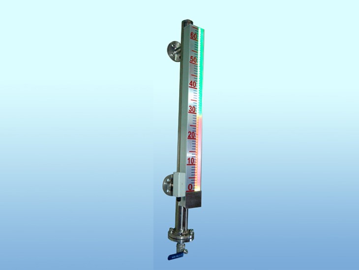 是我公司利用自然關在液體中折、反射的原理,借助紅、綠濾色片,在測量時,使液相顯示綠色,汽相顯示紅色,由于液、汽相顯示反差大,指示鮮明清晰,所以對遠距離操作和夜巡視更為有利;該液位計的汽、液相側裝有兩個防爆角閥,角閥內裝有靈敏度很高的保險鋼珠,當石英管發生意外破裂時,鋼珠在內外壓差(>0.3MPa)作用下自動堵住通道,有效防止介質泄露,避免發生事故,該液位計可**應用于石油、化工、電力、冶金等行業,是目前國內外z理想的直讀式液位計之一。